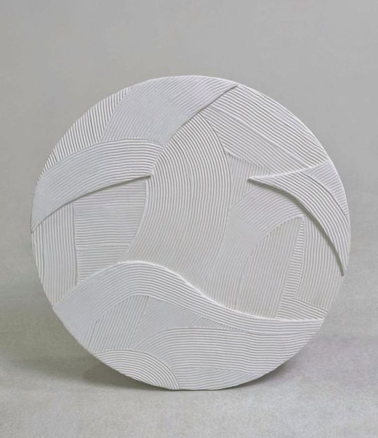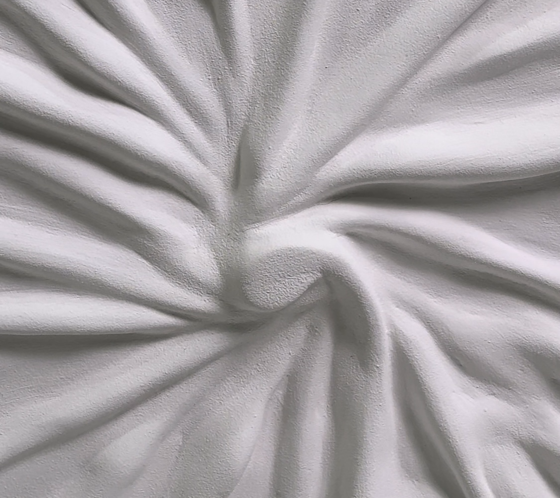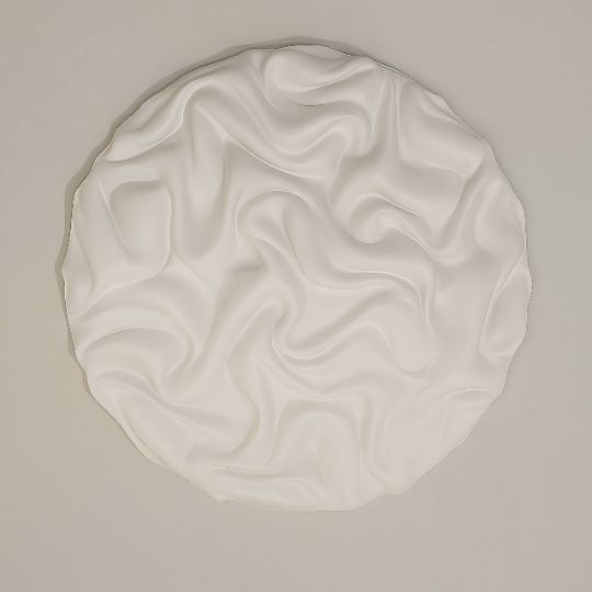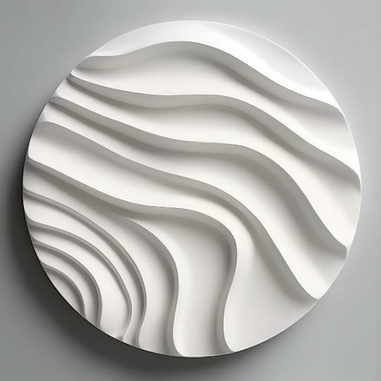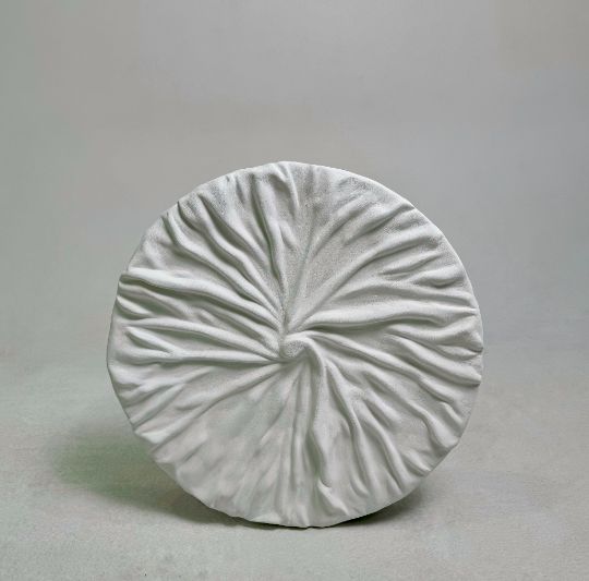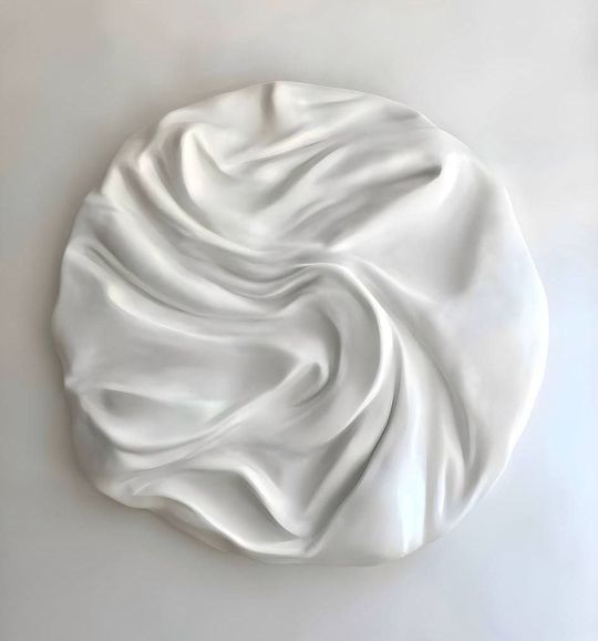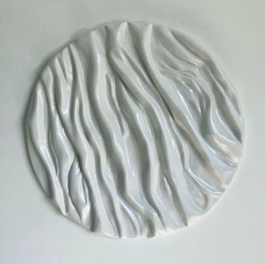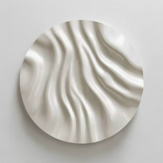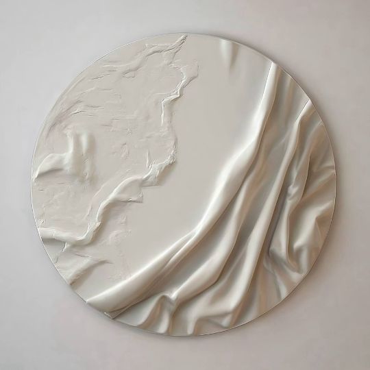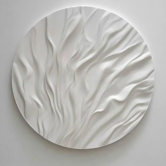 Круглое объемное панно в белом цвете. Скульптурное панно со складками.