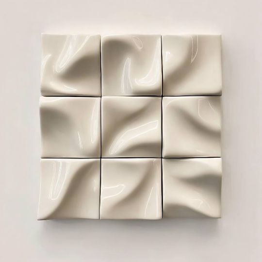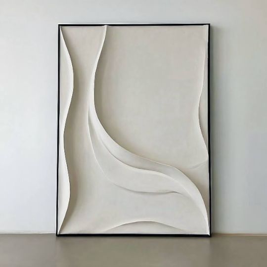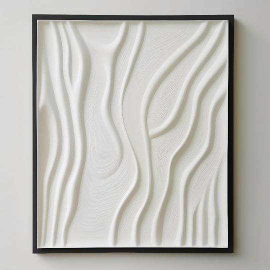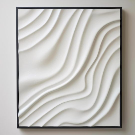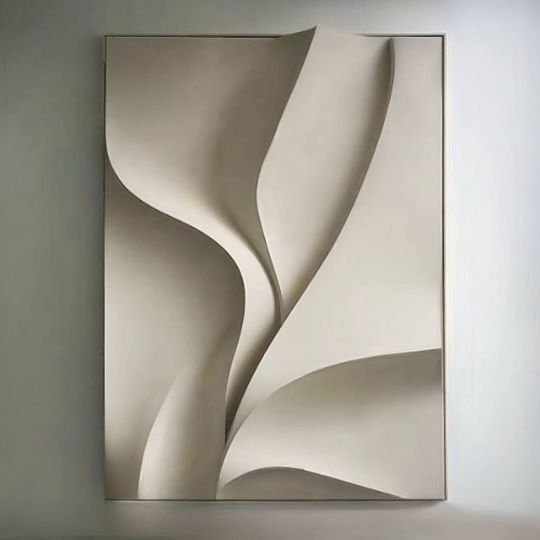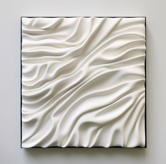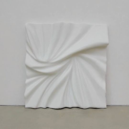 Объемное панно в белом цвете. Скульптурное панно со складками.