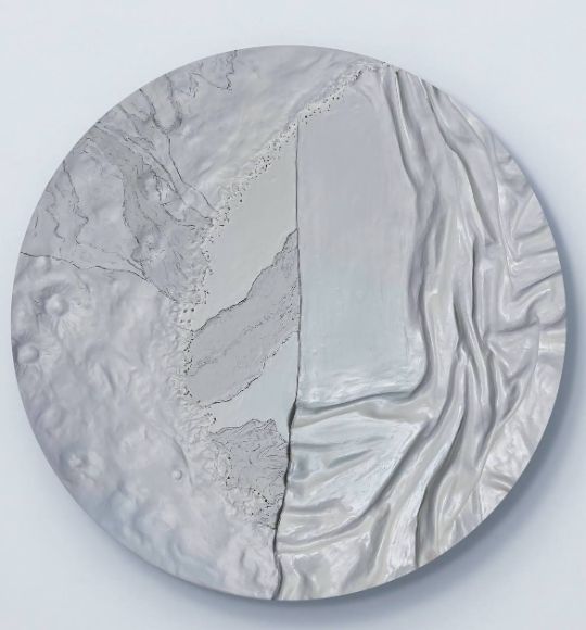 Объемное круглое панно. Круглая текстурная картина со складками.
