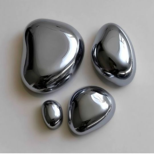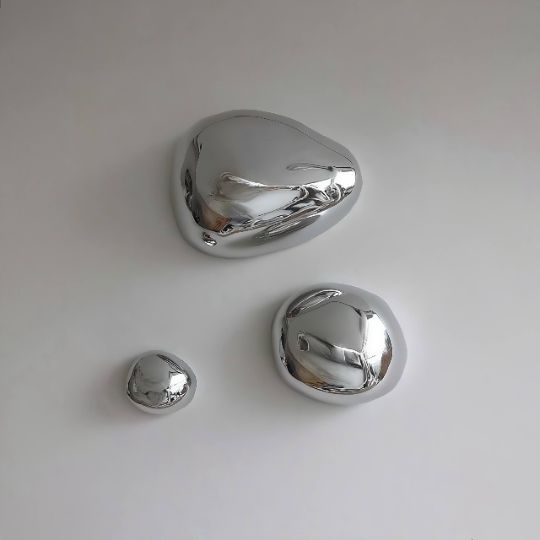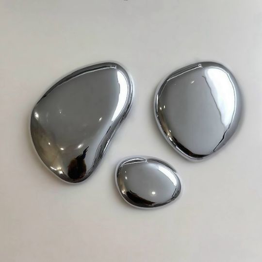 Металлические объемные панно камушки. Панно в цвете серебро, хром, металлик