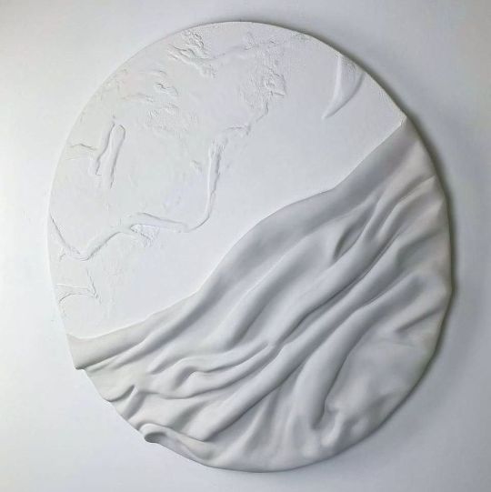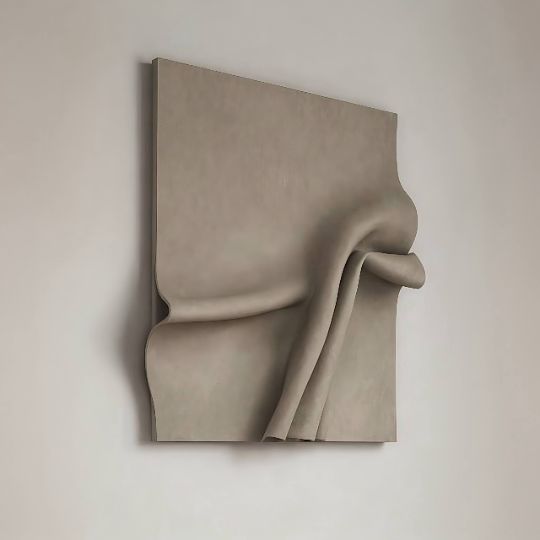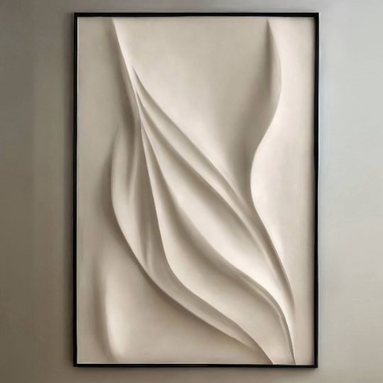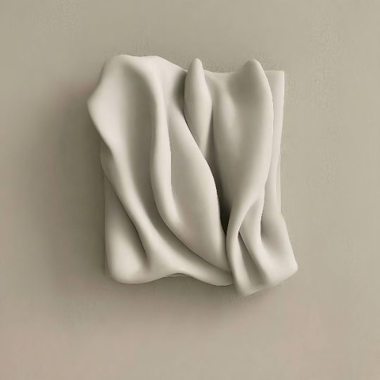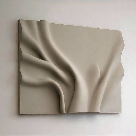 Объемное гипсовое, светлое панно. Скульптурное панно со складками.