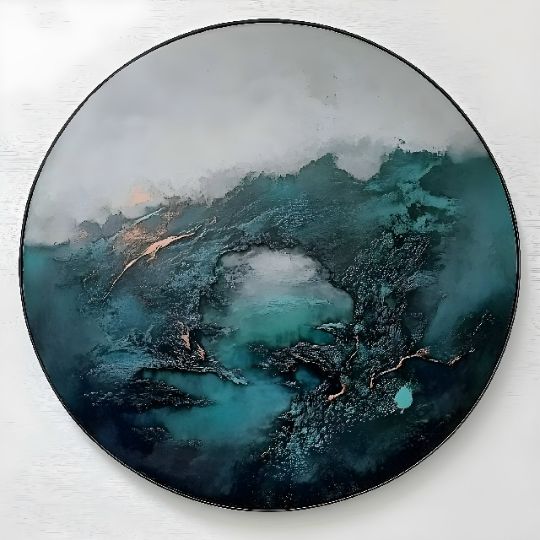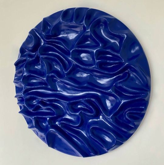Объемное панно в синем цвете. Круглая текстурная картина.
