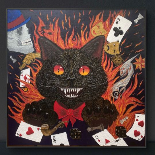 Материалы: артборд, текстура, гипс, акриловые краски, аэрозольные краски, лак защитный глянцевый