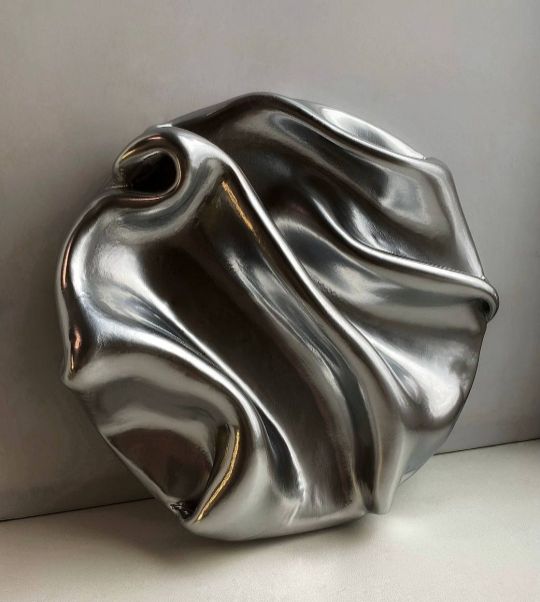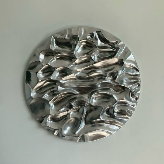 Объемное панно в цвете металлик, серебро. Круглая текстурная картина.