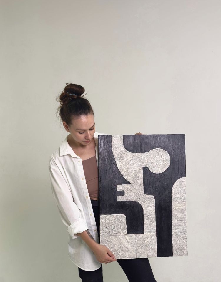 Материалы: текстура, акриловые краски, деревянное основание, лак защитный